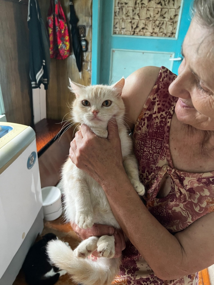 Это Белуша. Татьяна Анохина забрала ее домой, когда кормила бездомных кошек на улице.