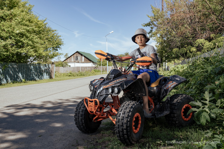 А это мальчик по имени Нурали, он окончил пятый класс. По Катон-Карагаю Нурали часто передвигается на своем квадроцикле. Мы не успели поговорить с ним, так как он немного спешил.