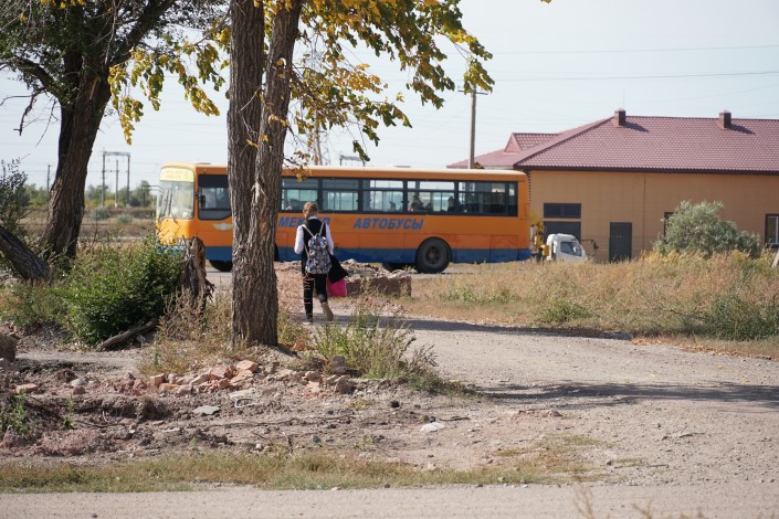 Гульзада отправляет детей в школу, которая находится в жилом массиве Ондирис (Лесозавод).