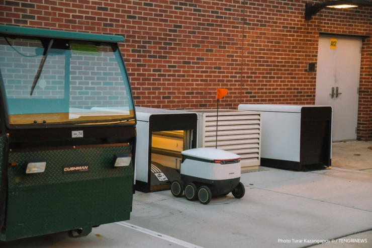 "Ну и самое невероятное, что я когда-либо видел, по территории студенческого городка разъезжают роботы. Как мне рассказали, они развозят еду для студентов, которые по каким-то причинам не могут идти в столовую", - комментирует фотограф.