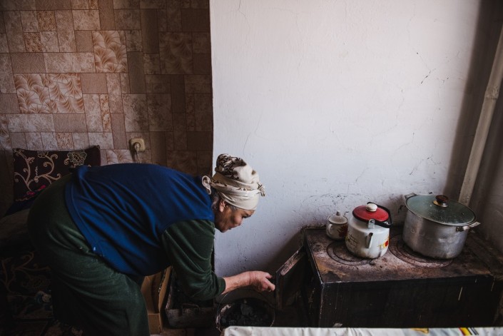 Вот так местные жители отапливают свои квартиры. Сначала набирают уголь, который хранится под балконом первого этажа.