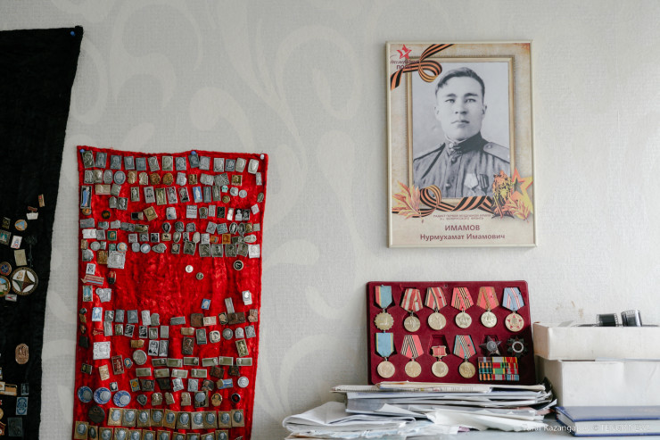 Просторная квартира в левобережной части Астаны. Нас встречает Ринат Имамов и сразу приглашает в комнату, пройдя в которую, словно попадаешь в музей. Здесь хранятся личные вещи Нурмухамата Имамова, негативы, фотографии, газетные вырезки.