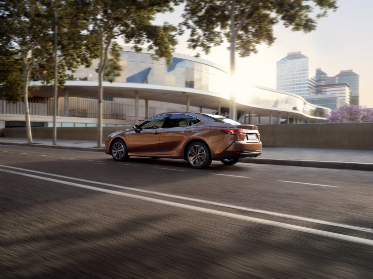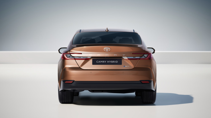 Удлиненный свес и заниженная линия крыши сзади придают ощущение динамичности, а мощные боковые линии выштамповки сходятся у эмблемы на задней части, создавая эффект стремительности. Задние фонари Camry также полностью обновились, а очертания декоративных линий на корме и крышке багажника повторяют силуэт молота, логически завершая элегантный силуэт кузова.