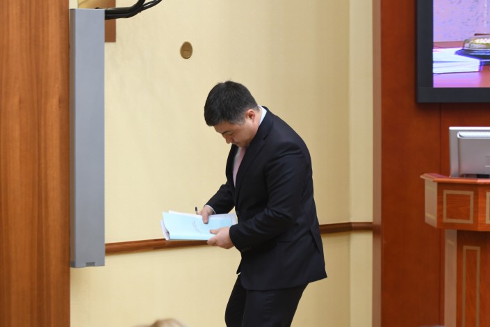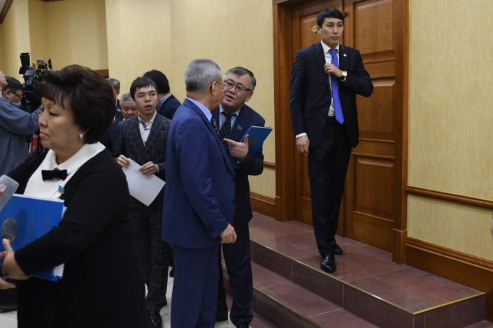 Тем временем заседание Мажилиса еще даже не думало заканчиваться. Но в какой-то момент охранники Нигматулина приняли выжидательную позицию. Очевидно, им поступил сигнал, что сейчас должен выйти их шеф. Нурлан Нигматулин действительно покинул заседание, оставив ведение пленарки вице-спикеру.
