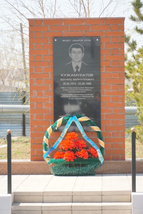 Геройству Эдуарда Кужамуратова установлен памятник. Он появился перед зданием СИЗО в этом году накануне Дня защитника Отечества.