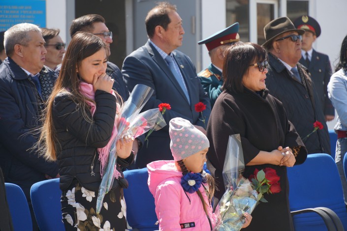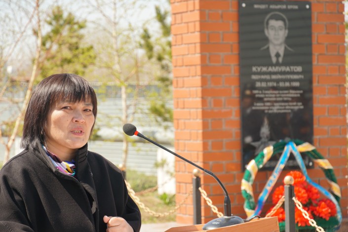 Когда Эдуард Кужамуратов погиб, его единственной дочери Айзаде было всего три года. Она совсем не помнит своего отца. Знает о нем только по рассказам мамы и родных. На открытие памятника дочь героя приехала уже со своей дочкой.