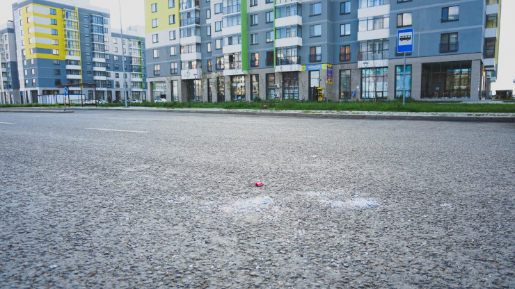Несмотря на то что машин здесь мало, судя по осколкам на асфальте, иногда все же случаются аварии. Интересно, как это произошло.