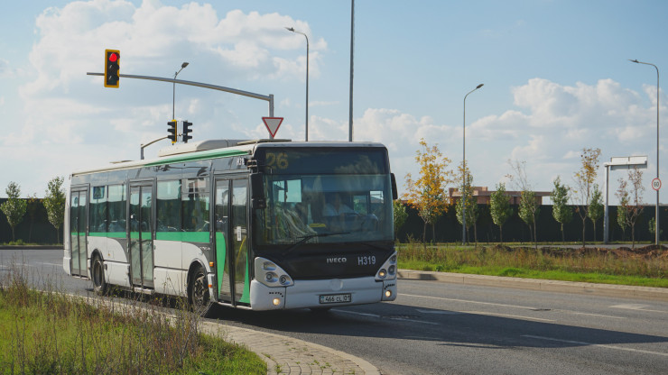 Автобусы сюда ходят, правда, всего один маршрут - № 26. Здесь у него конечная. А едет он через левый берег и связывает "Багыстан" со старым железнодорожным вокзалом.