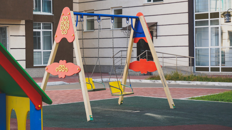 К тому же решетка помогает родителям быть уверенными, что ребенок не убежит за пределы двора, ведь кругом одна только степь, которую малышня может захотеть исследовать. Но со стороны все же выглядит так, будто играют они в манеже... для больших ребятишек.
