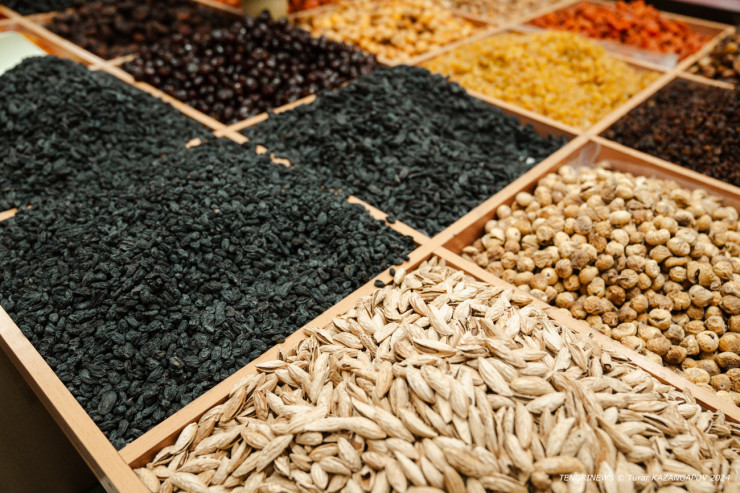 В одном из павильонов сухофрукты, орехи и специи продают сын и отец - Искандер и Исматулла.