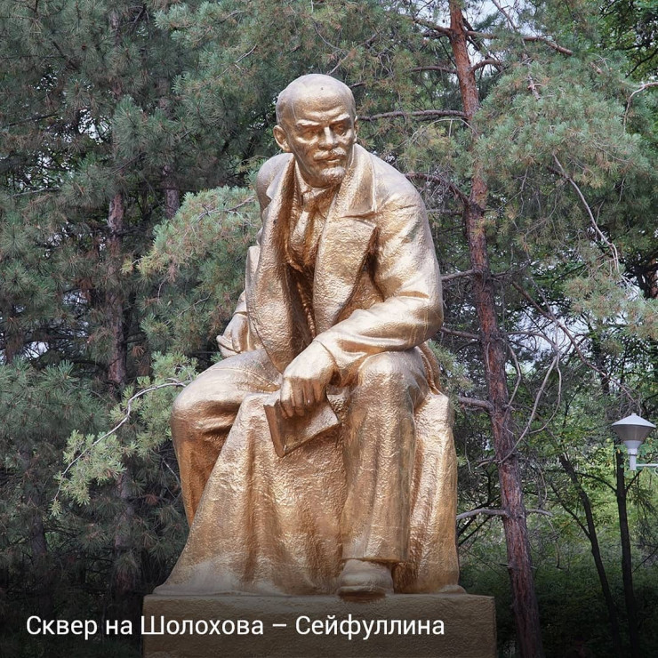 "Мы решили разобраться, сколько же Лениных находится в Алматы. Главный памятник стоит за кинотеатром "Сары-Арка" вместе с другими советскими политическими деятелями. Ранее 12-метровый монумент находился на Старой площади. Интересно, что бронзовый Ильич – работа выдающегося скульптора Евгения Вучетича, автора монументов "Родина-мать зовет" в Волгограде и "Воина-освободителя" в берлинском Трептов-парке", - рассказывает Дмитрий Доценко.