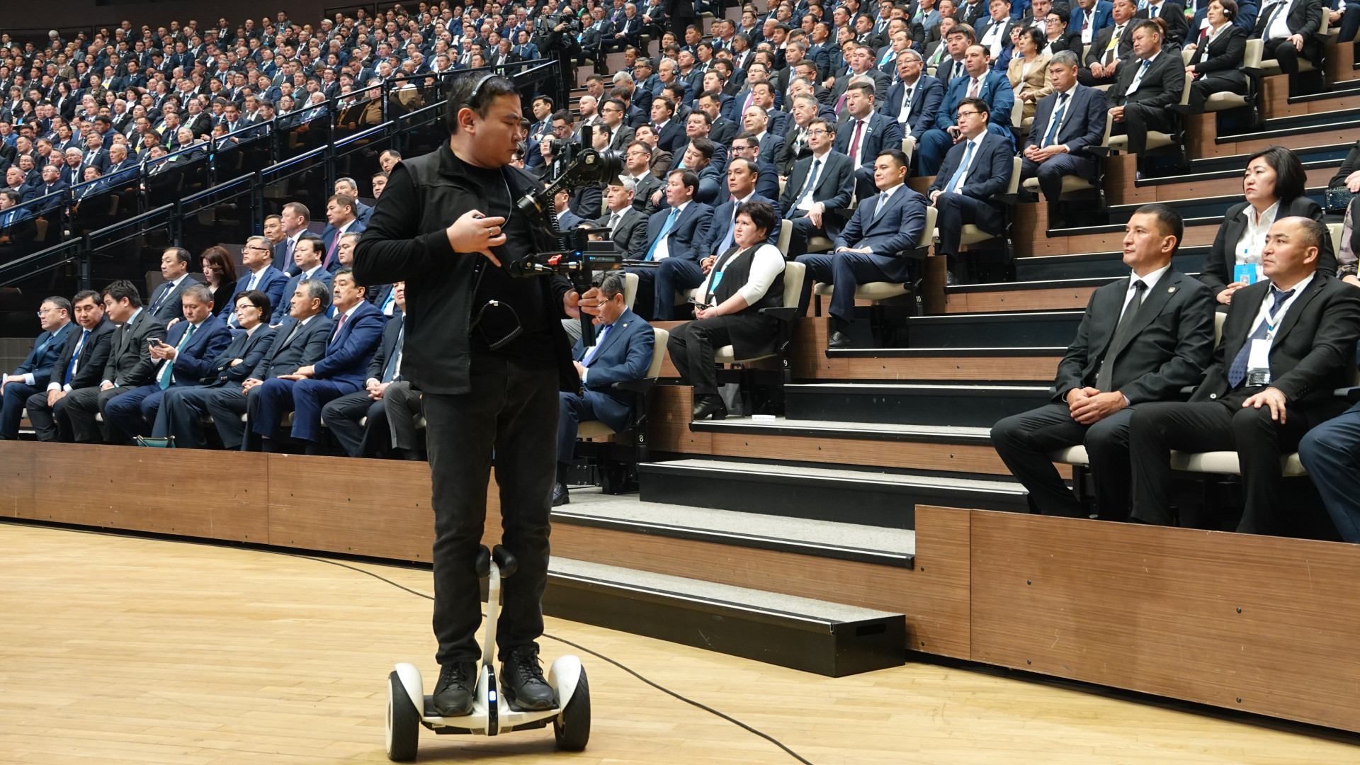 Кстати, технологиями здесь вооружены не только акимы и министры. Один из операторов плавно катится на сегвее — снимая парад костюмов, он сам становится частью парада гаджетов.