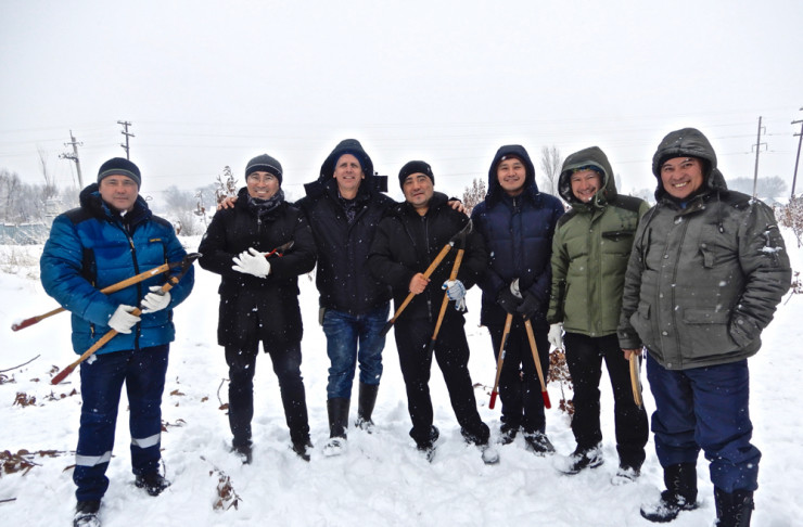 На фото: Патрик Брэди и фермеры, прошедшие обучение на курсах по садоводству в Казахстане