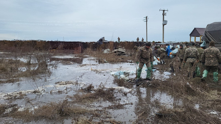 По другую сторону Ишима в этот момент военнослужащие наращивали дамбу.