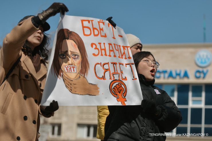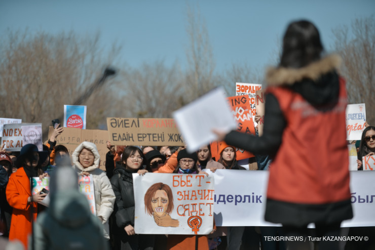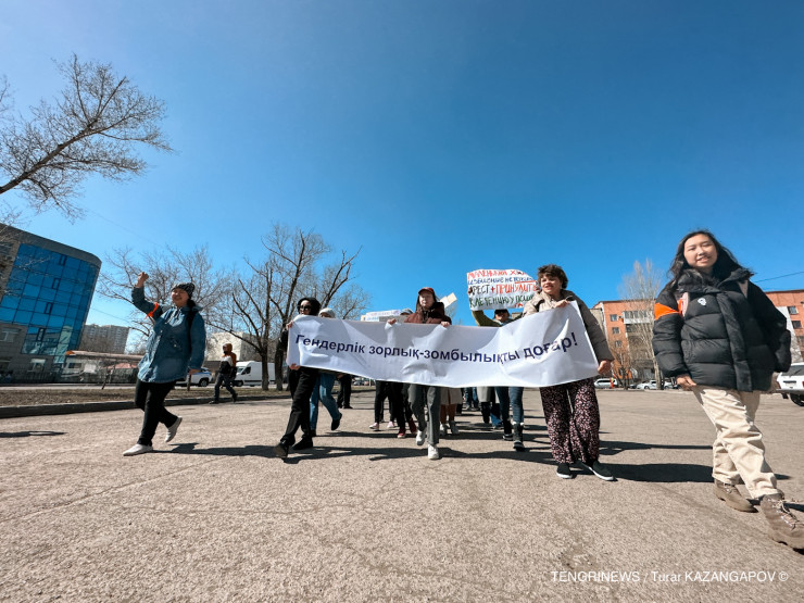 В Астане прошел марш и митинг против насилия в отношении казахстанских женщин, организованный инициативой Myqty Women, передает корреспондент Tengrinews.kz.