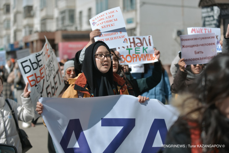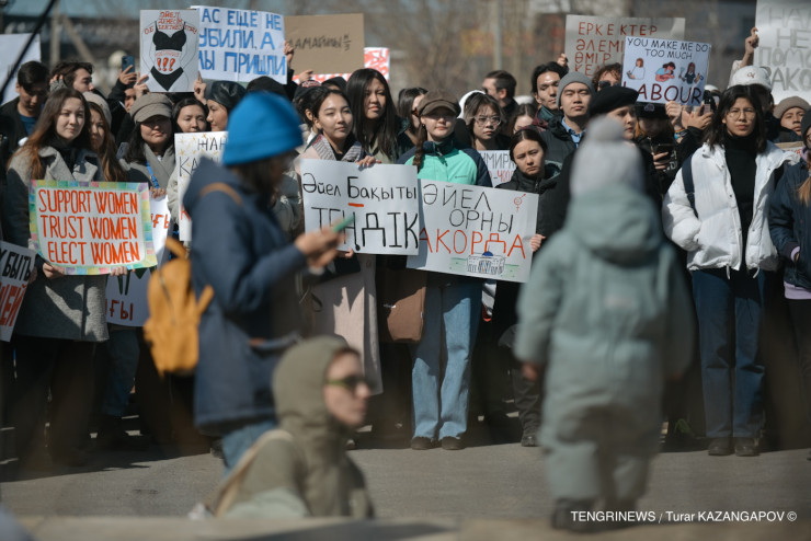 "Мы не знаем, сколько было человек, но когда мы шли колонной в марше, было гораздо больше людей, чем мы ожидали", - рассказала организатор антидискриминационной инициативы Myqty.women Нурсулу Гапурова.