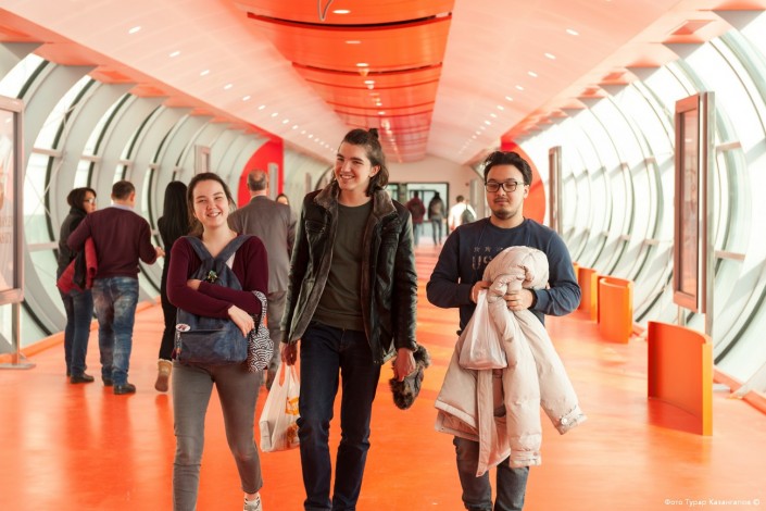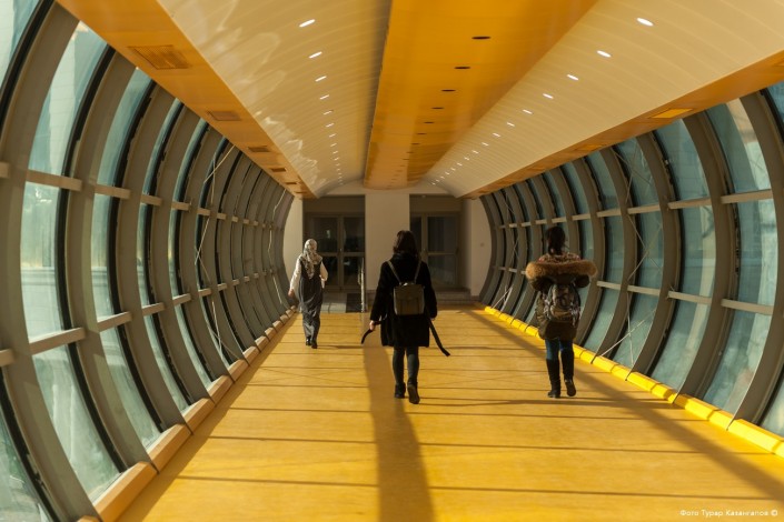 Кстати, в Назарбаев Университете рассказывают, что в прошедшие морозы занятия у первокурсников здесь не отменяли благодаря вот этому теплому переходу из общежития в учебный блок.