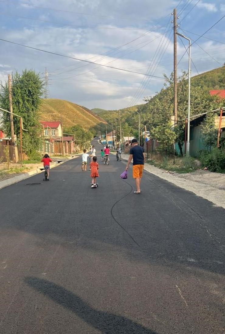 "После репортажа в течение небольшого промежутка времени акимат поселка Бесагаш установил на нашей улице освещение. А под руководством акимата поселка Туздыбастау нам заасфальтировали дорогу. Асфальт положили очень качественно. Плотность, толщина, материалы - все сделали на совесть! На мой взгляд, даже не на всех больших трассах так кладут, - делится с нами Кайрат. - Также со стороны Майлина сделали арык. Установили слив, где надо. Теперь во время дождей нет потопов. Водопроводную трубу хорошо проложили. Наконец-то у нас есть и дорога, и освещение, за что мы очень благодарны".