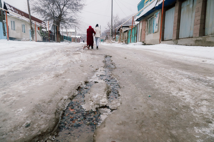 Год назад жители нам рассказали, что здесь не было ремонта уже около 70 лет. Помимо этого, в день, когда мы приехали, люди спускались к нам на санках, потому что по дороге беспрерывно текла вода, которая замерзала. Идти пешком, особенно пожилым, было попросту небезопасно.