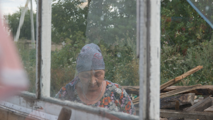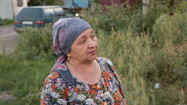 Гульбаршин Аманжоловна показывает нам свой дом, который был разрушен во время стихийного бедствия. Там она с супругом прожила 19 лет. Тут она снова плачет. Как тогда, в апреле.
