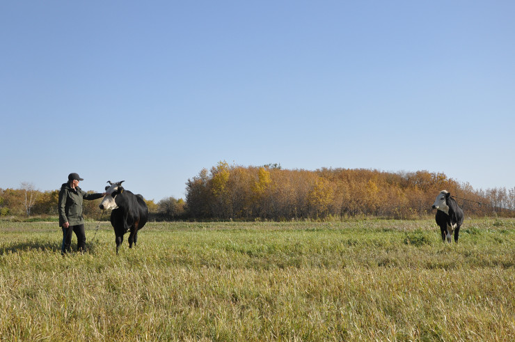 "А здесь был спортивный городок, баскетбольная и волейбольная площадки", - говорит Валентина Иосифовна. И заодно знакомит нас со своей любимицей - коровой с нежным именем Малыш, которая пасется как раз на том месте, где ее хозяйка в детстве играла в волейбол.