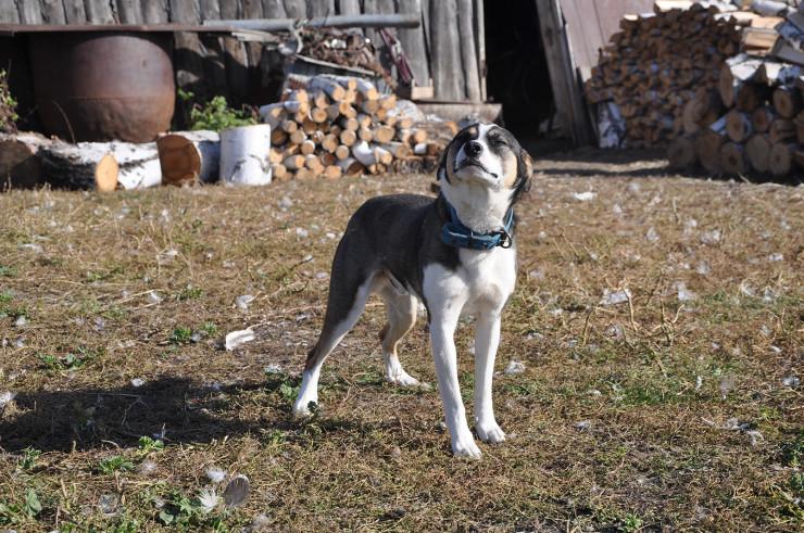 Навстречу нам выбегает приветливый щенок. Он гостям рад.