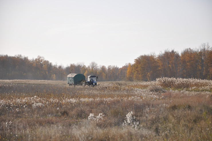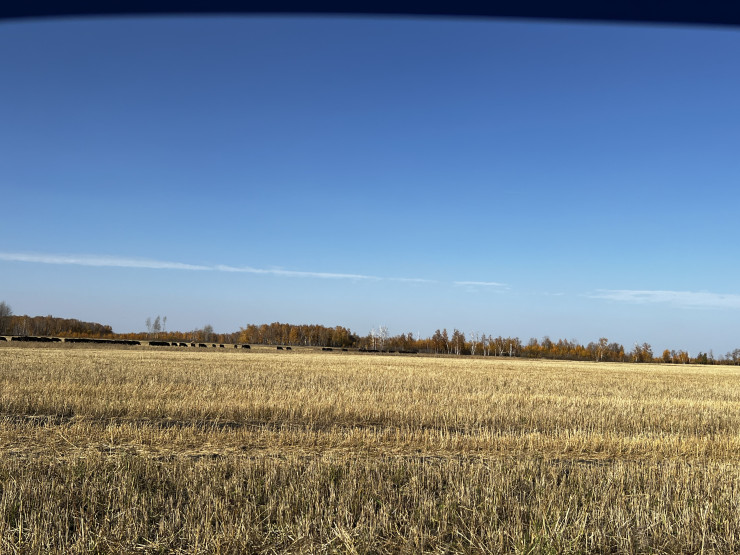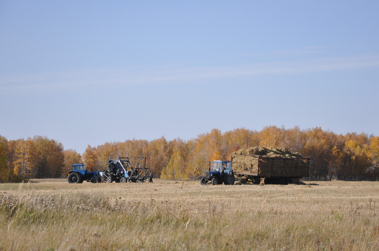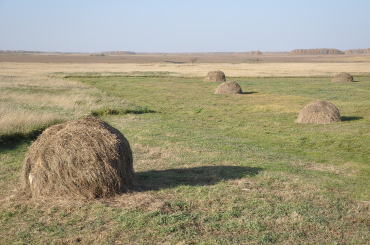 Неподалеку целая стена из рулонов с сеном. Это сенозаготовка нынешнего года.