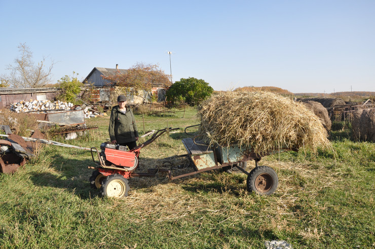 Последняя жительница села Студеное держит корову, теленка, овец, птицу. Сено заготавливает на зиму сама – центнеров 60. Сама косит, возит, скирдует.