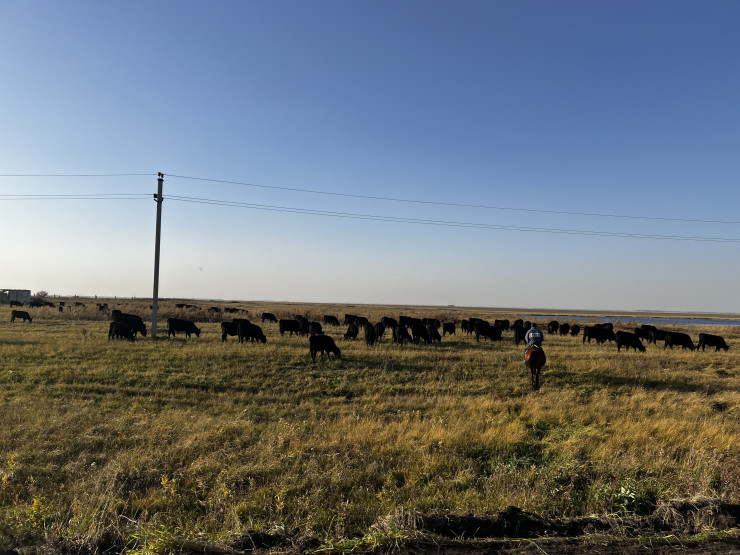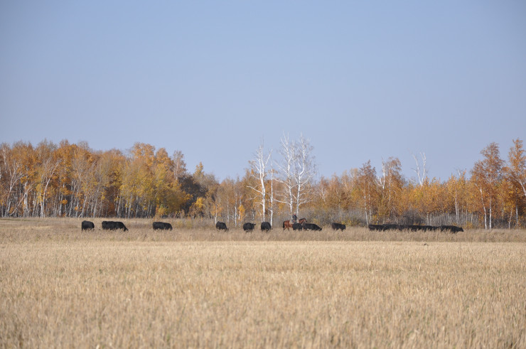 Проезжаем мимо добротных ферм. Хозяйство занимается животноводством. Племенных буренок завезли из Дании и Америки
