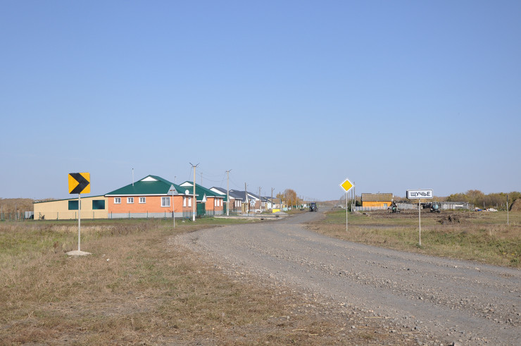 По грейдерной дороге мы подъезжаем к селу Щучье. Наш попутчик вспоминает, что когда-то здесь было около 200 дворов, сейчас порядка 50. Была полная школа, сейчас она закрылась, дети учатся в соседнем Белом.