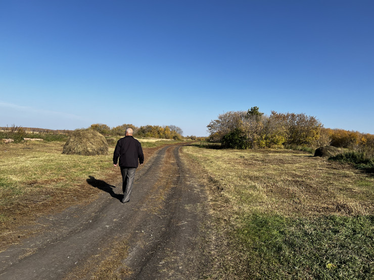 Подъезжаем к одинокому дому североказахстанской "отшельницы". Александр Васильевич говорит, что когда-то он стоял в самом центре деревни, сейчас вокруг нет ничего.