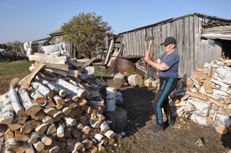 "Сено кошу прямо в деревне, в фундаментах, оставшихся от домов, далеко не езжу: зачем бензин тратить? Да и травостой здесь хороший. К зиме готовлюсь… Уголь уже перетаскала, теперь дрова надо переколоть", - делится пенсионерка.