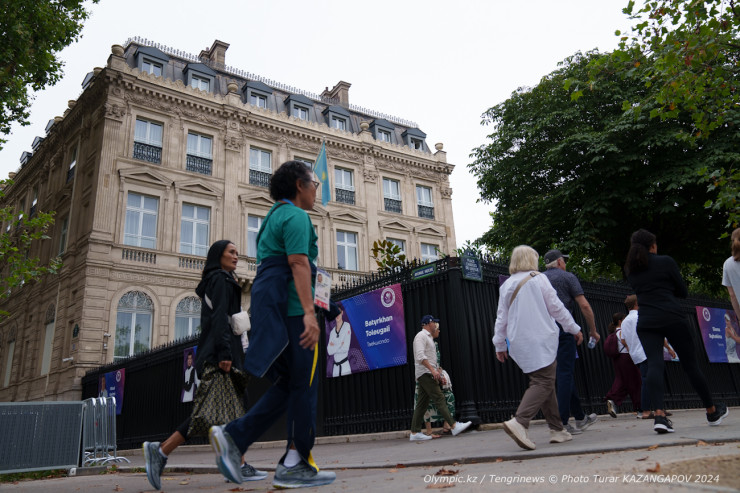 Возле триумфальной арки располагается посольство Казахстана во Франции. Его фасад украшают фото казахстанских спортсменов, которые претендуют на олимпийские медали.