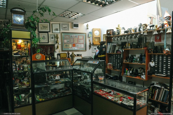 В старом центре Астаны за обычной на первый взгляд вывеской находится настоящий мини-музей. Быть может, кто-то из жителей или гостей города замечал немолодых людей с авоськами, но горящими любопытством глазами, заходящих сюда, в антикварный магазин. Владельцами лавки является семья Семеновых, перебравшаяся в столицу в начале 2000-х годов. Свой магазин они открыли в 2006 году. Как объяснил нам Семенов-старший, Валерий Алексеевич, это был единственный специализированный магазин в Астане.