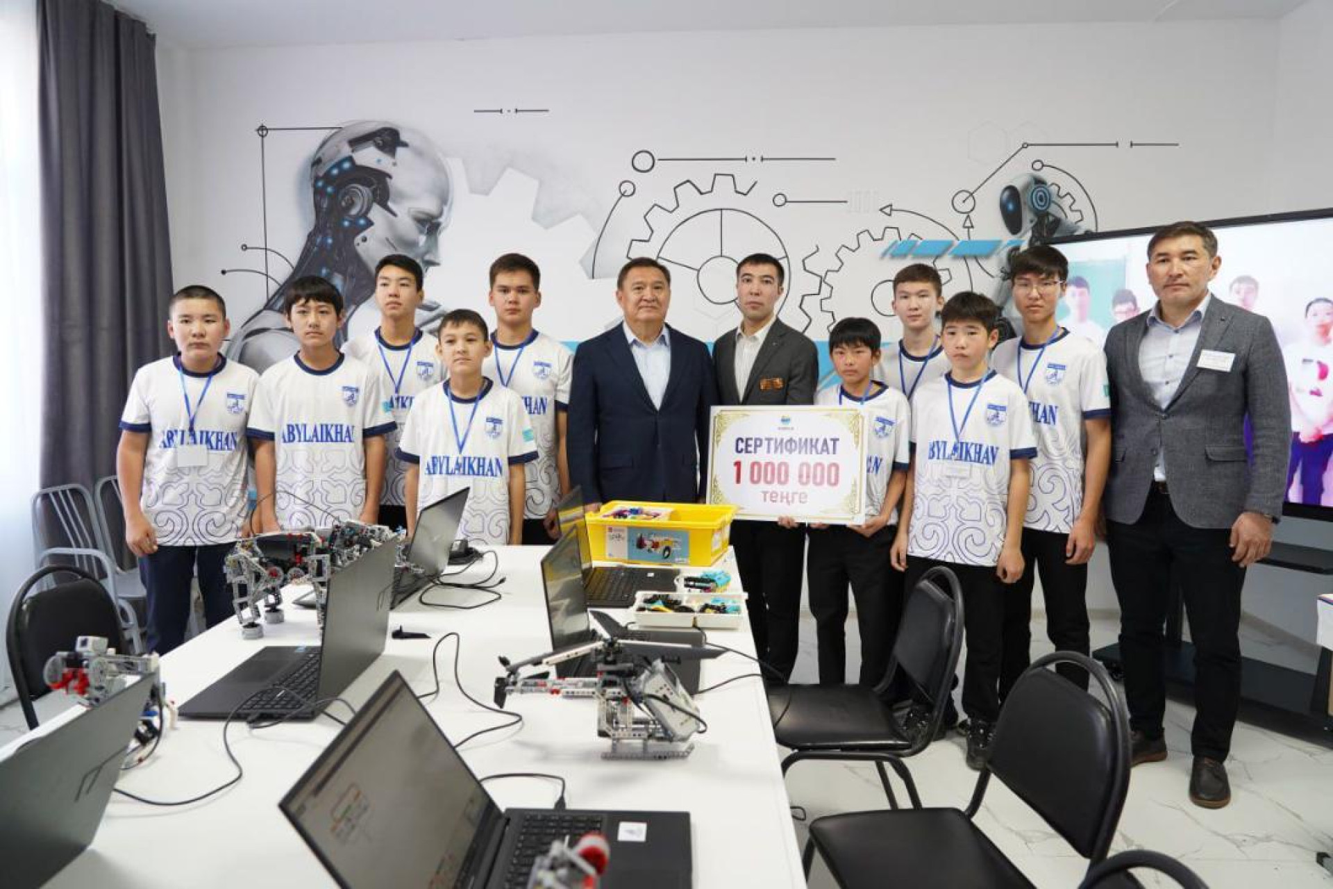 Далее Ахметжанов встретился с юными инженерами — воспитанниками кабинета робототехники Кызылагашской средней школы имени Абылай хана, которые накануне стали победителями престижной международной олимпиады в Италии. Отмечая успехи юных казахстанцев, глава региона сказал: