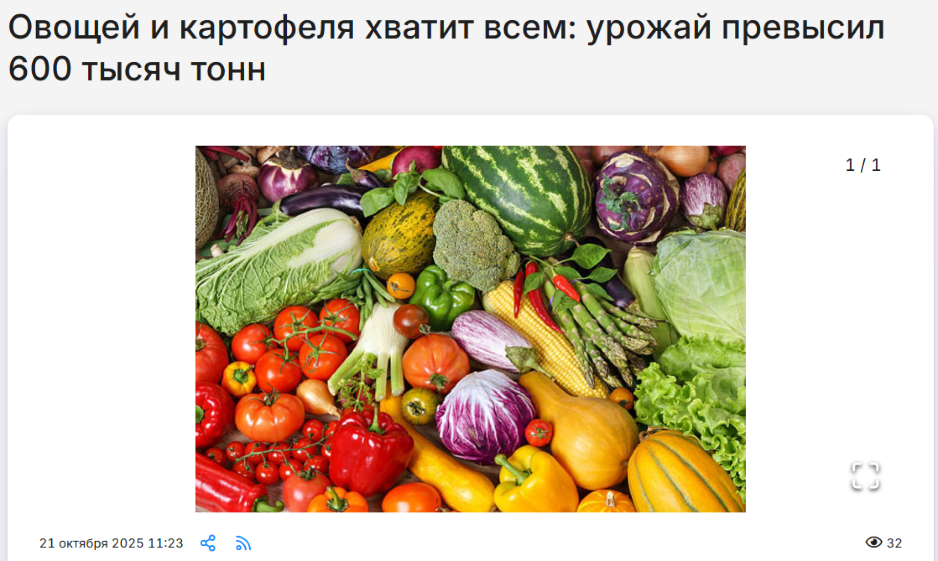 А также было заявлено, что благодаря усилиям региональных властей по развитию аграрного сектора местные хозяйства способны "обеспечивать рынок свежими овощами круглый год".