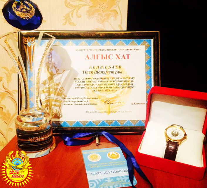 За проявленный героизм, отвагу и самоотверженность старший сержант полиции Кокошев и сержант полиции Кенжебаев были награждены памятными часами, сувенирами и почетными грамотами от МВД РК.