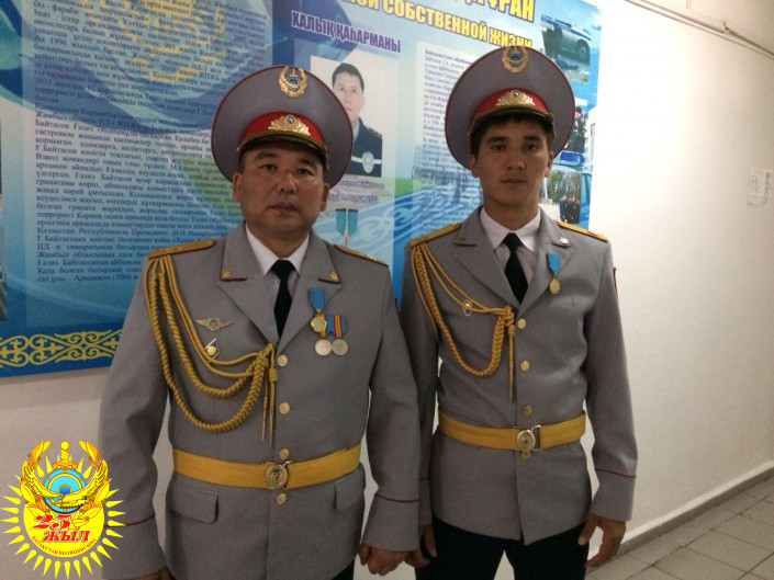К тому моменту заместитель командира взвода роты дорожно-патрульной полиции Алпысбеков отслужил в органах внутренних дел уже более 16 лет, а его напарник лейтенант полиции Максат Алиев - всего два года. "Уже третий год пошел, как мы вместе с ним работаем. Он молодой, но отважный парень. Мы заступили в наряд и при патрулировании участка заметили пожар. Без колебаний сразу же перелезли через забор и начали будить хозяев. Думаю, что это обычный рядовой поступок полицейского", - рассказал Серикбек Олжабаевич.
