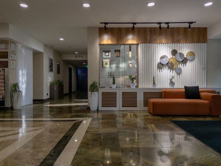 Как поделились информацией на ресепшене, на данный момент отель состоит из 105 номеров от категории "Стандарт" до категории "Полулюкс", 4 конференц-зала, ресторан, банкетный зал, лобби-бар, СПА-комплекс.
