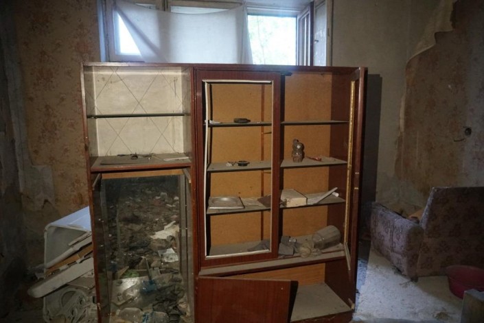 Заходим в сохранившиеся подъезды. Квартиры открыты. Ощущение жуткое.