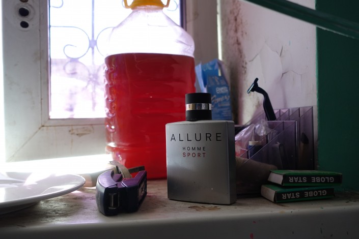 Со своими двумя детьми Исатай по-прежнему живет в крохотной подсобке, которая находится в комнате ожидания автомойки.