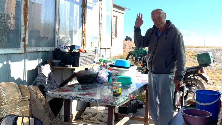 Игорь Кветкин переехал в Улкен чуть больше 16 лет назад. Сначала работал приемщиком на рыбном заводе, а сейчас охраняет частную территорию. Тут же и живет.