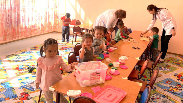 Еще одна уникальность поселка - это мини-центр для детей (детский сад), который находится в здании школы и состоит из двух групп, в каждой из которых по 25 малышей от двух до четырех лет.