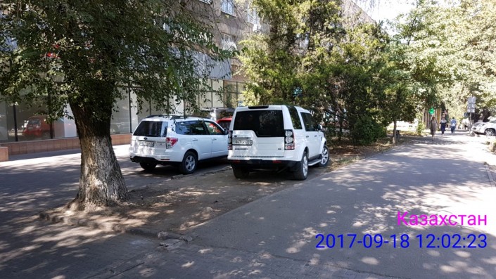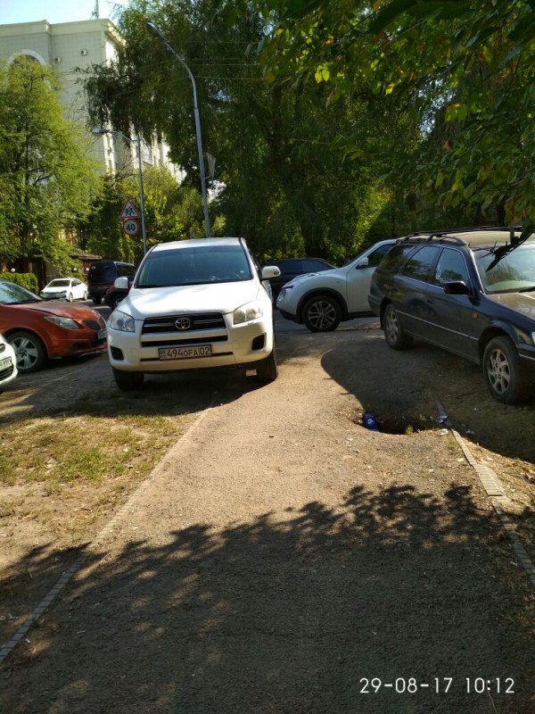 Парковка на газоне на проспекте Достык, выше улицы Хаджимукана.