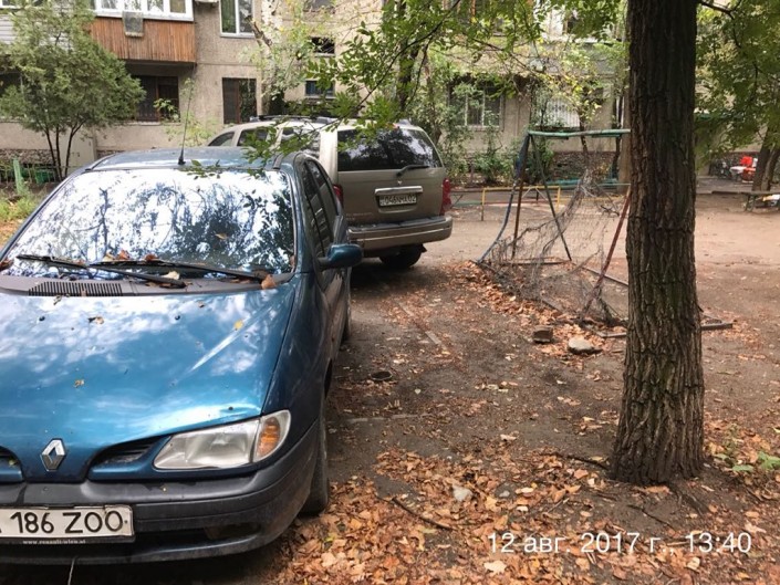 Парковка на детской площадке. Улица Жандарбекова, дом № 180.