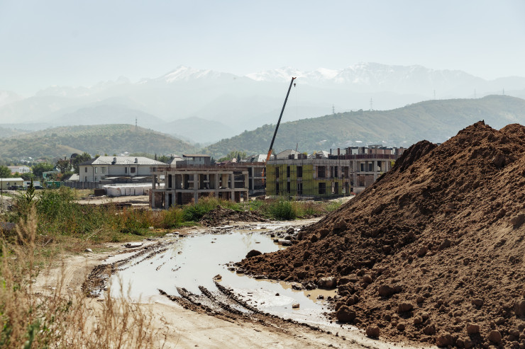 В день нашей встречи с жителями мы увидели масштабную стройку на 10 гектарах в микрорайоне Ерменсай. Здесь компания решила построить несколько десятков коттеджей и таунхаусов на месте бывшего яблоневого сада, который был засыпан несколькими годами ранее.