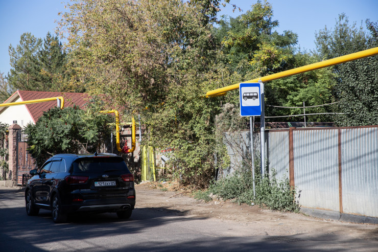 А вот так выглядит остановка на улице Жангир хана. Просто знак на обочине узкой проезжей части.