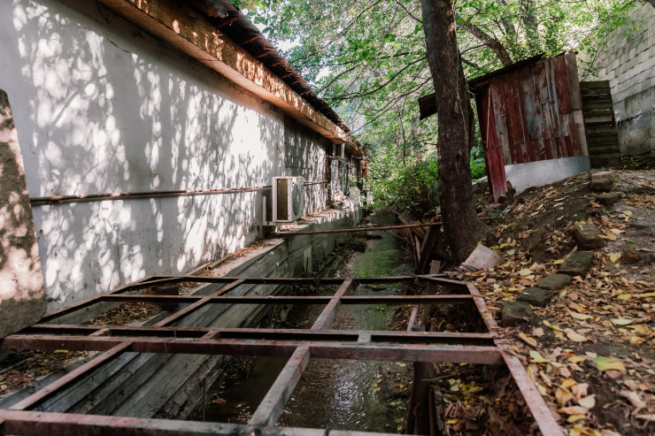 Пройдя во внутренний двор одного из кафе, мы обнаружили настоящую речку, которую, кажется, владельцы недвижимости решили "присвоить". Прямо у воды находятся туалеты. Не нужно быть экспертом, чтобы представить, куда могут направляться все экскременты. Соблюдаются ли санитарные нормы и экологические стандарты в данном районе?