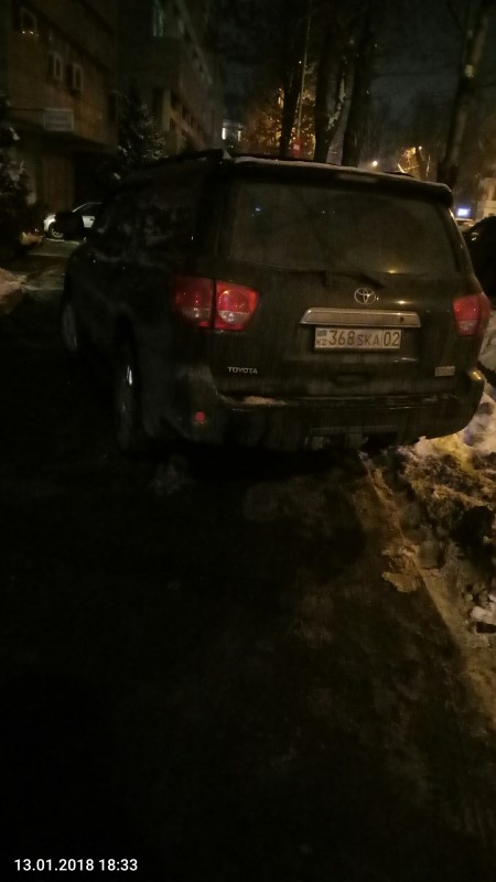 "Жалобы от жильцов: затрудняет проезд другим машинам и мешает при входе в подъезд", - комментировал фото очевидец из Алматы.
