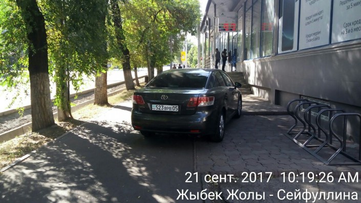 О парковке прямо на тротуаре на пересечении улицы Жибек Жолы и проспекта Сейфуллина сообщал очевидец из Алматы.